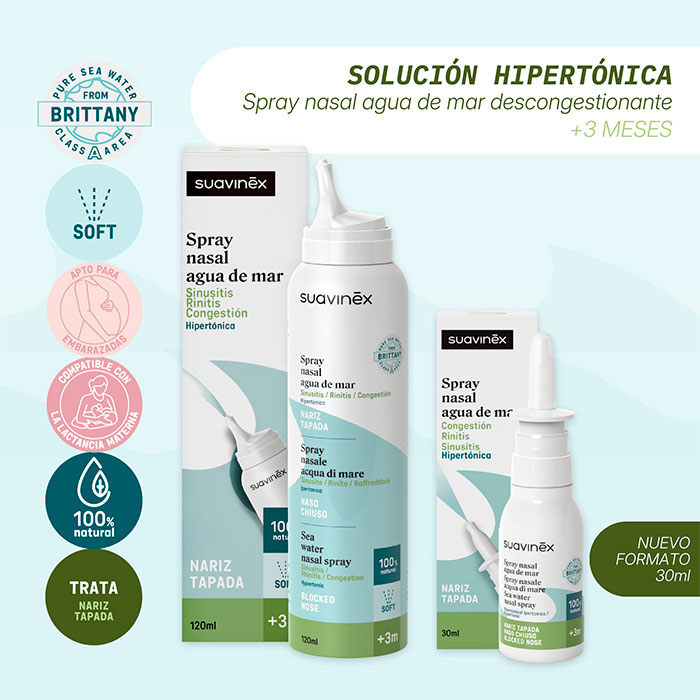 El Spray Nasal Hipertónico Descongestionante para Bebés +3m de Suavinex es la solución natural para la nariz tapada y la congestión nasal en bebés a partir de 3 meses.