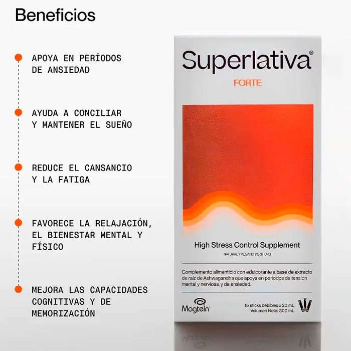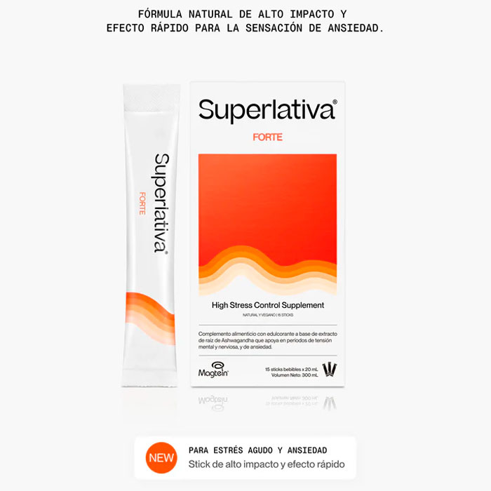 Superlativa Forte es la primera fórmula natural de alto impacto y efecto rápido, diseñada específicamente para el manejo del estrés agudo y la sensación de ansiedad.