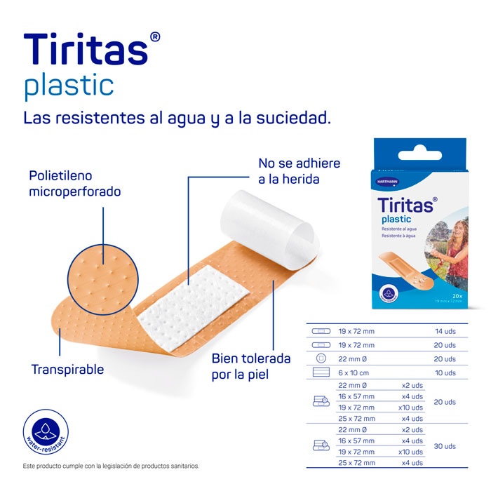 Estas tiritas son resistentes al agua y a la suciedad, ayudando a mantener la herida limpia y protegida de agentes externos que puedan causar infecciones.