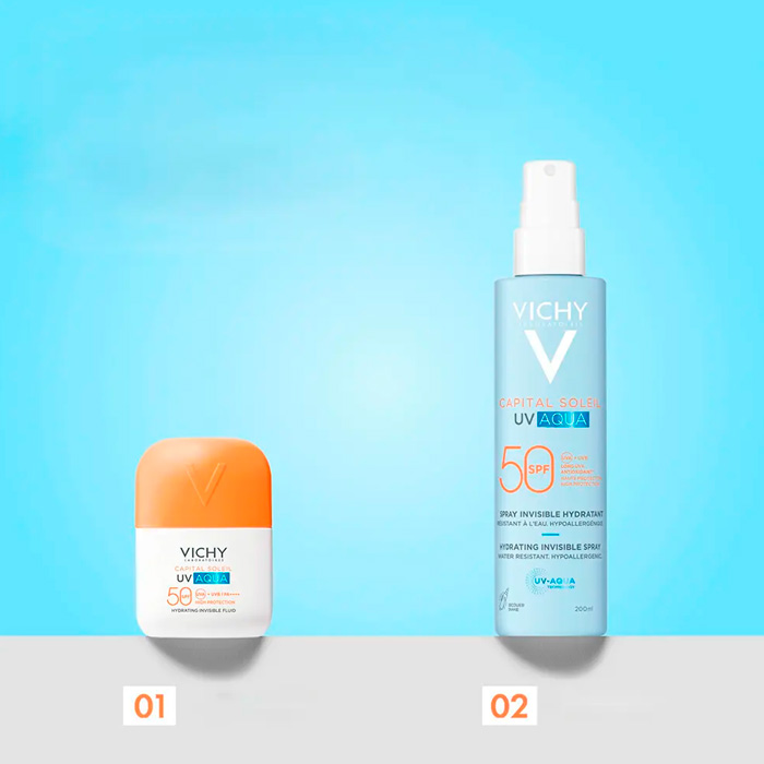 Vichy Capital Soleil UV Aqua Spray Hidratante Invisible SPF50 redefine la protección solar diaria al combinar una seguridad extrema con una ligereza sin precedentes.