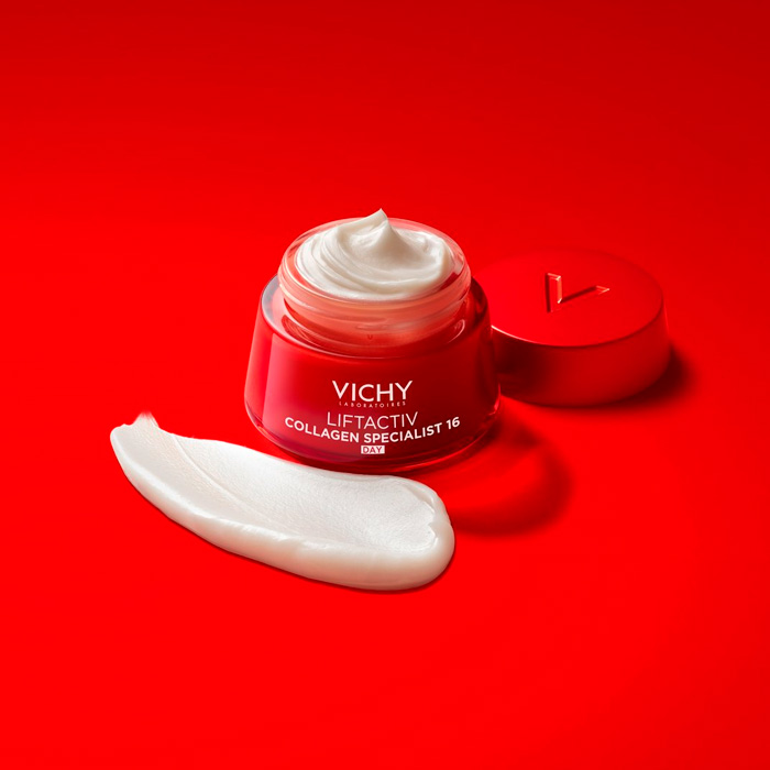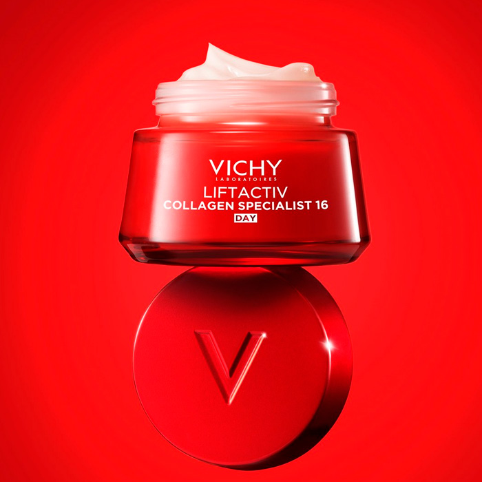 Vichy Liftactiv Collagen Specialist 16 Crema de Día es la primera crema de día de Vichy con tecnología Co-Bonding, diseñada para potenciar el colágeno y corregir 16 signos de la edad.