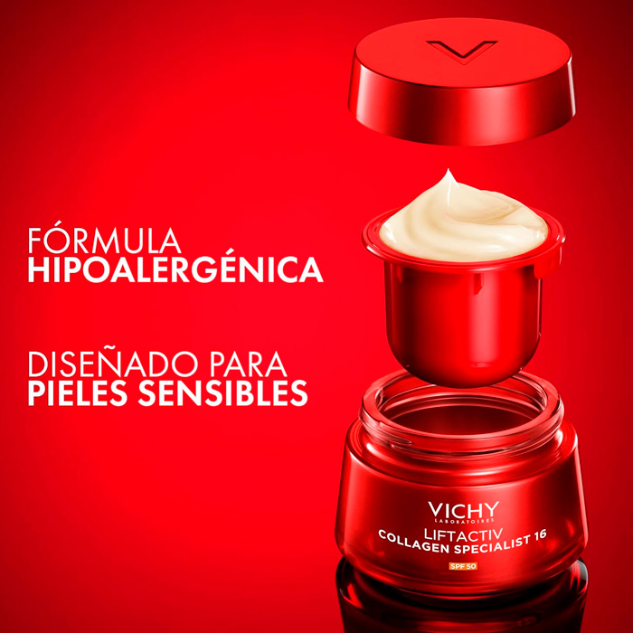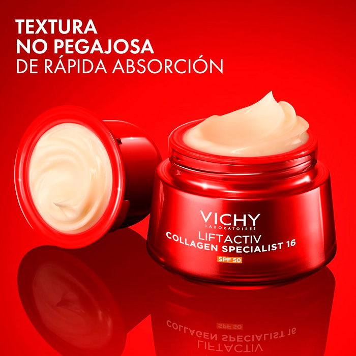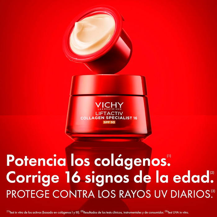 Vichy Liftactiv Collagen Specialist 16 Crema SPF50 representa una auténtica revolución en el cuidado antiedad tras 15 años de investigación científica.