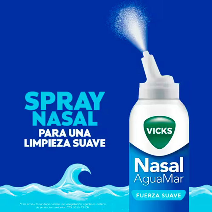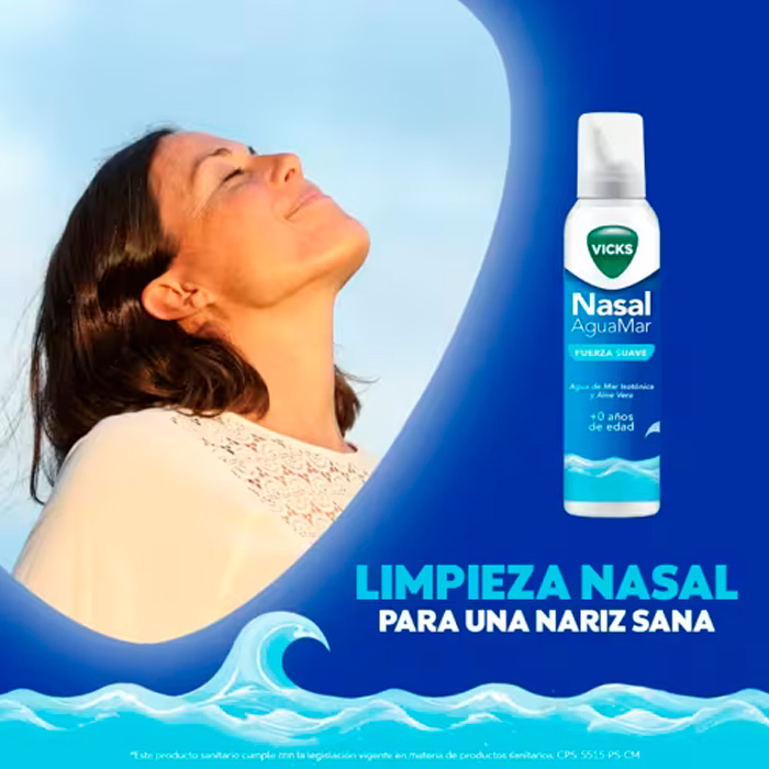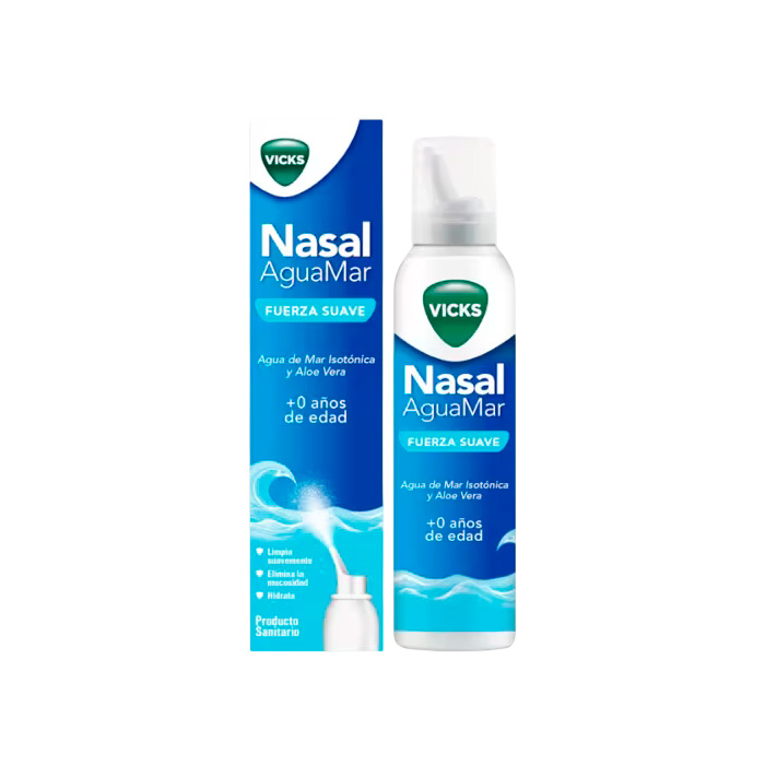 Vicks Nasal Agua de Mar Fuerza Suave es una solución isotónica de alta calidad diseñada para la higiene diaria y el alivio de la congestión nasal en toda la familia, incluyendo a recién nacidos (0+ meses).