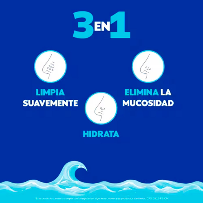 Con una concentración del 0,9% de cloruro de sodio, respeta la fisiología nasal mientras elimina eficazmente el exceso de mucosidad.