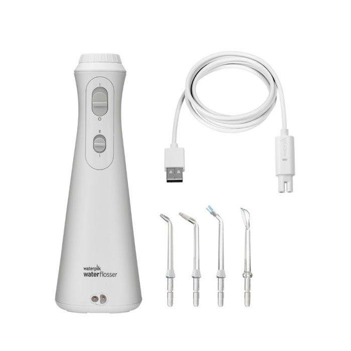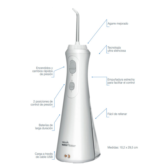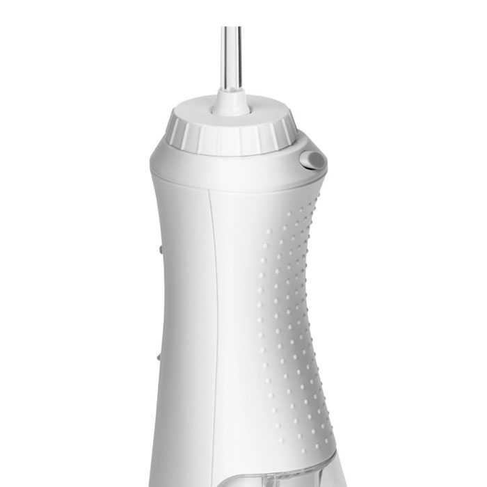 El Irrigador Bucal Plus Waterpik Inalámbrico WP-490 Blanco es un modelo portátil y recargable diseñado para brindarte una limpieza bucal completa y fresca dondequiera que estés.