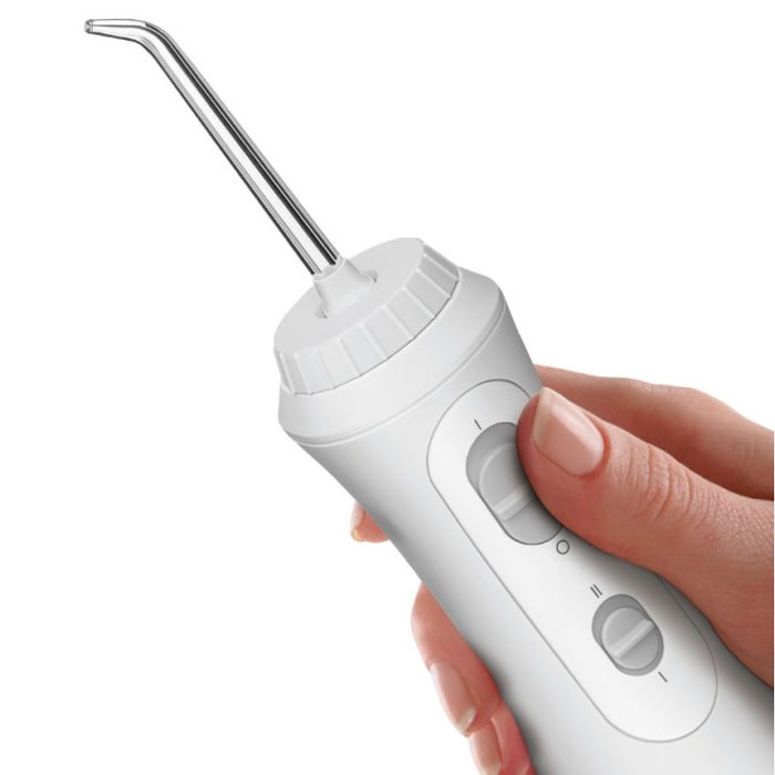 Dirige el chorro en un ángulo de 90 grados hacia tus encías. Deberás regular la presión en función de tus necesidades.
