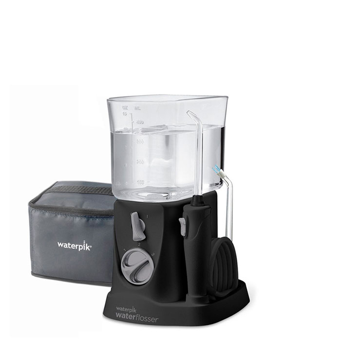 El Irrigador Bucal WaterpikTraveler WP-300 Negro es el modelo más compacto de la gama de irrigadores de sobremesa de Waterpik, lo que lo hace perfecto para quienes viajan con frecuencia o tienen baños con espacio limitado.
