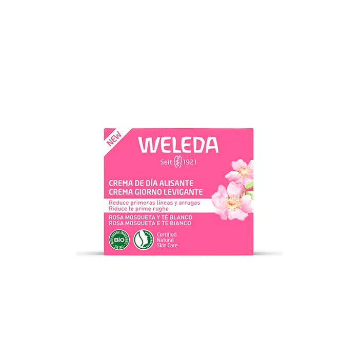 Weleda Crema de Día Alisante de Rosa Mosqueta y Té Blanco es una fórmula hidratante y ligera diseñada para combatir los primeros signos de la edad y revelar una piel visiblemente más lisa, luminosa y con un glow natural.