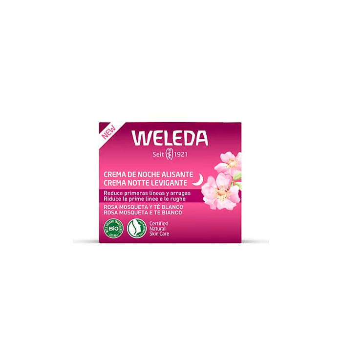 Weleda Crema de Noche Alisante de Rosa Mosqueta y Té Blanco es una fórmula regeneradora intensiva diseñada para reparar la piel durante la noche, el momento clave para la renovación celular.