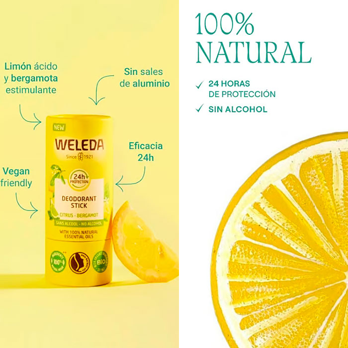 Weleda Desodorante Stick Citrus es un desodorante de origen 100% natural que te ofrece 24 horas de eficacia en un cómodo formato sólido.